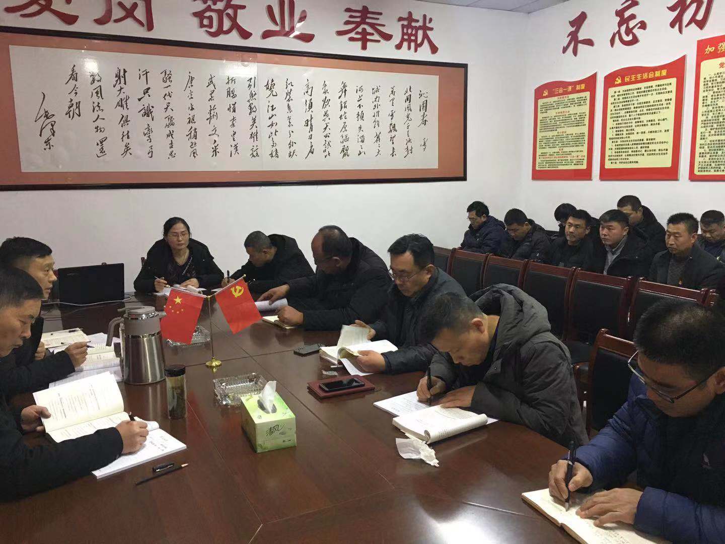 會(huì)上,黨支部書(shū)記宋慶國(guó)同志提出,在新的一年里,要從“新”開(kāi)始,拿出“新”干勁,制定“新”目標(biāo),把深入學(xué)習(xí)貫徹習(xí)近平新時(shí)代中國(guó)特色社會(huì)主義思想再推“新”高潮。每位黨員干部要自覺(jué)用這一思想武裝頭腦、指導(dǎo)實(shí)踐、推動(dòng)工作,深入理解掌握習(xí)近平新時(shí)代中國(guó)特色社會(huì)主義思想,進(jìn)一步樹(shù)立“四個(gè)意識(shí)”,增強(qiáng)“四個(gè)自信”。要轉(zhuǎn)變態(tài)度,做一個(gè)腳踏實(shí)地的實(shí)干家,切實(shí)把思想和行動(dòng)統(tǒng)一到習(xí)近平新時(shí)代中國(guó)特色社會(huì)主義思想上來(lái),統(tǒng)一到中央重大決策部署上來(lái)。
